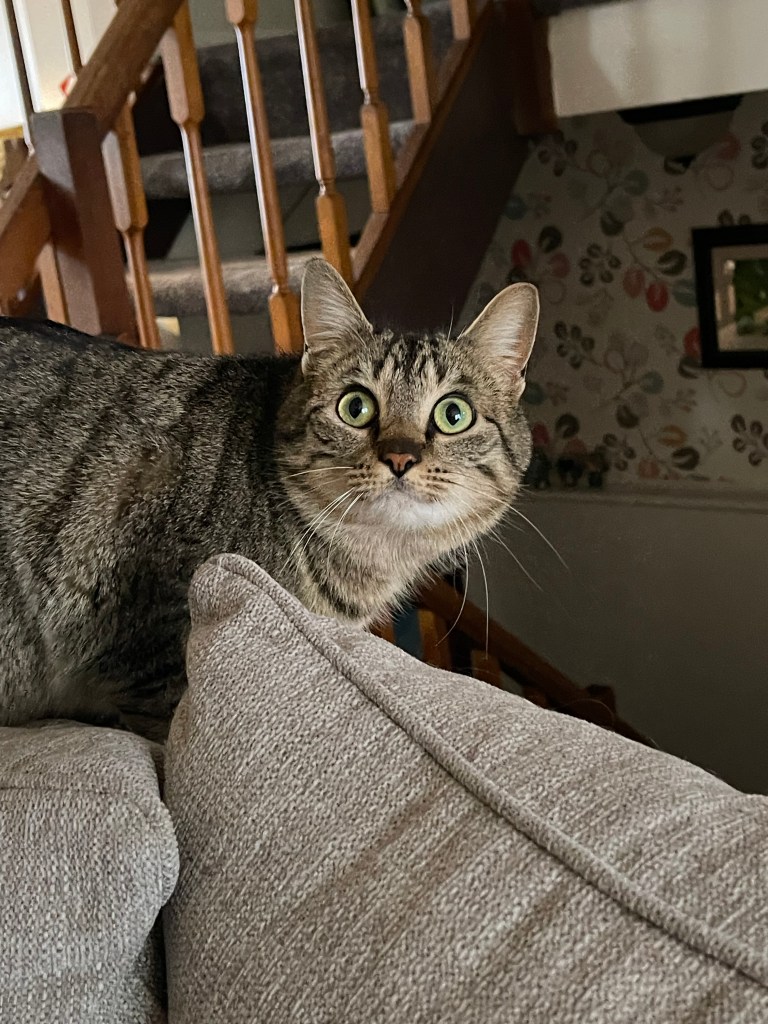 Pomegranate (formerly known as Mama Cat) has been in our neighborhood since shortly after we moved in. Why was that her old name, you might be asking? Well, she was very plump for a stray cat, and a few weeks after my wife started to pet her (and feed her…), she disappeared. A week or two later, she returns, a pair of kittens by her side – very Lion King-esque. So, she’s around well into fall, living her best stray life.